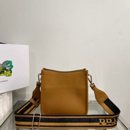 Replica Prada 1BH191 Leather mini shoulder bag tan