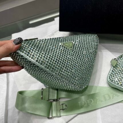 Replica Prada 1NE039 Crystal-studded satin pouch Green