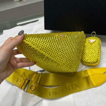 Replica Prada 1NE190 Crystal-studded satin pouch Yellow