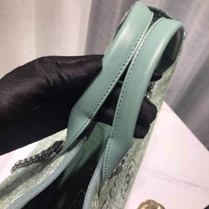 Introducing the stunning Replica Chanel Deauville Tote 38Cm Canvas Bag A66941 in the refreshing color of Fig Green. With its generous size of 38 x 31 x 21 cm. this tote bag is a must-have for any fashion enthusiast.