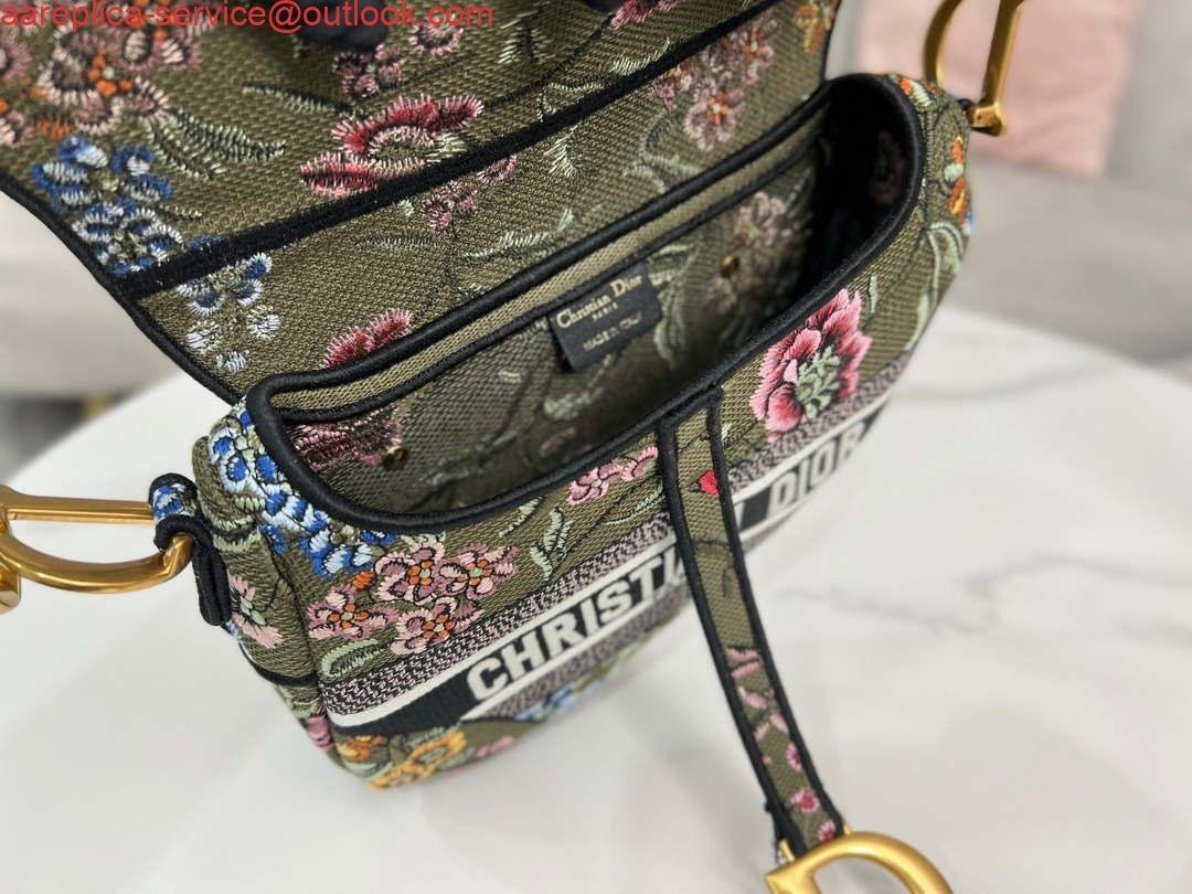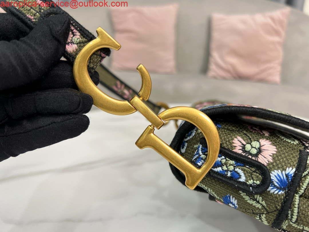 Replica Dior M0455 Saddle Bag With Strap Green Cross-Stitch Embroidery