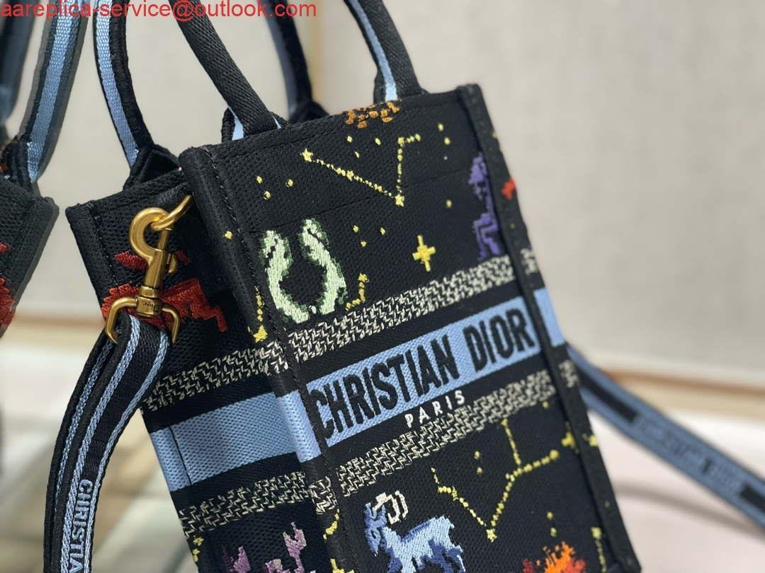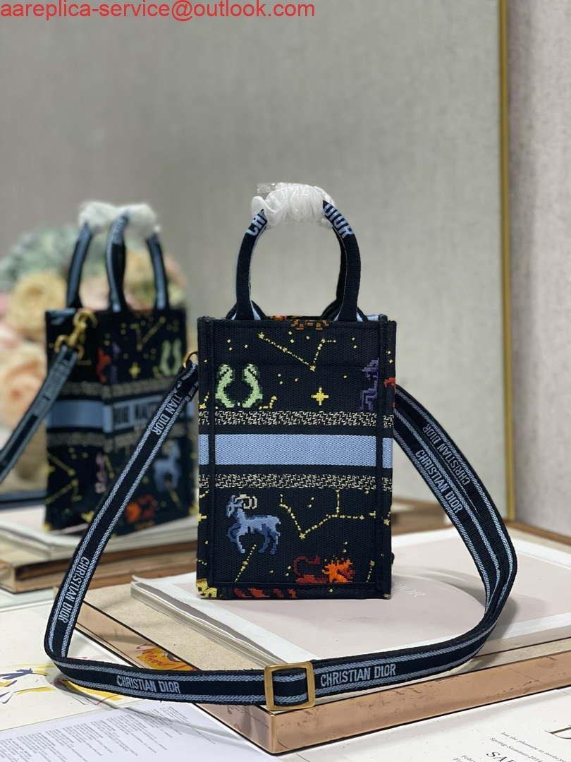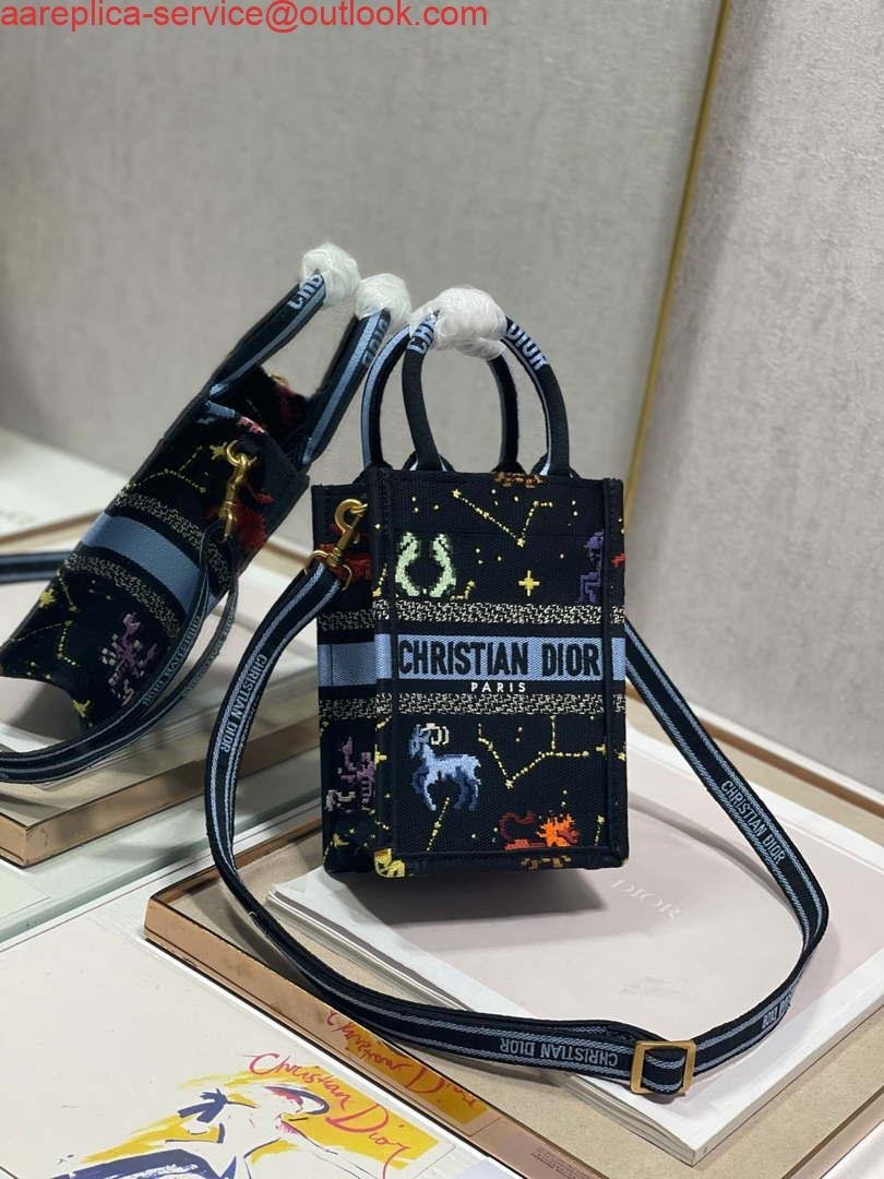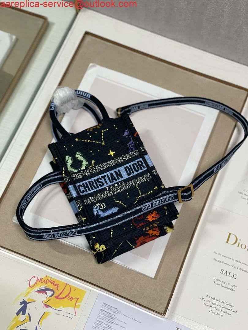 Replica Dior S5555 Mini Dior Book Tote Phone Bag Blue Dior Oblique Embroidery