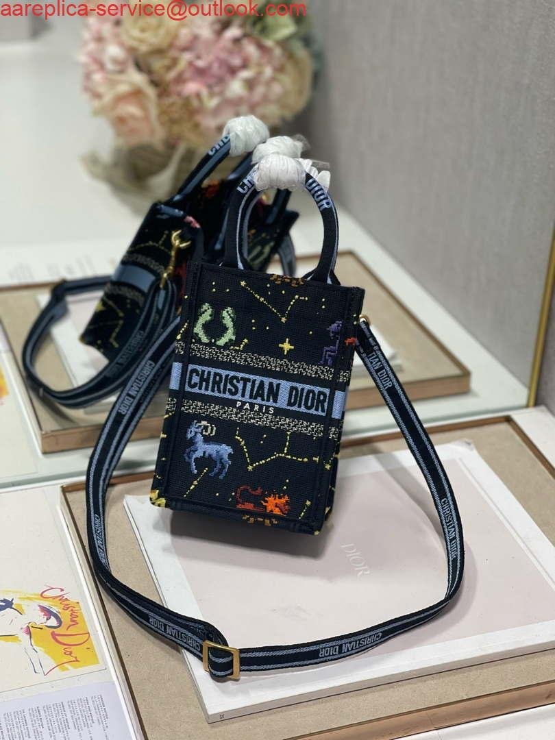 Dior S5555 Mini Dior Book Tote Phone Bag black multicolor petites fleurs embroidery on sale now.