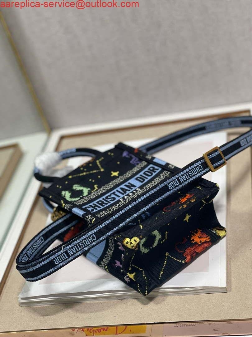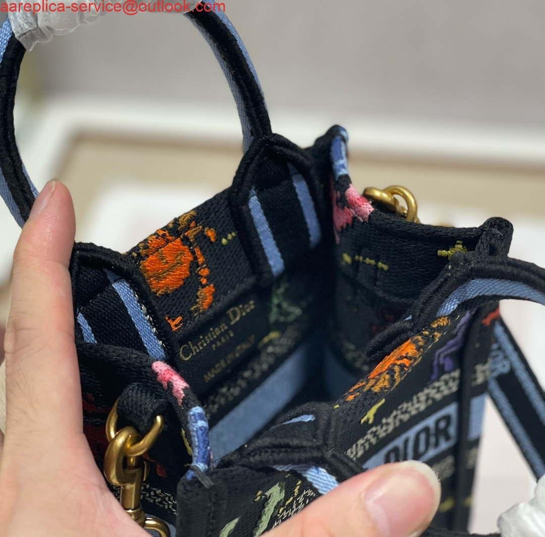 Replica Dior S5555 Mini Dior Book Tote Phone Bag black multicolor petites fleurs embroidery