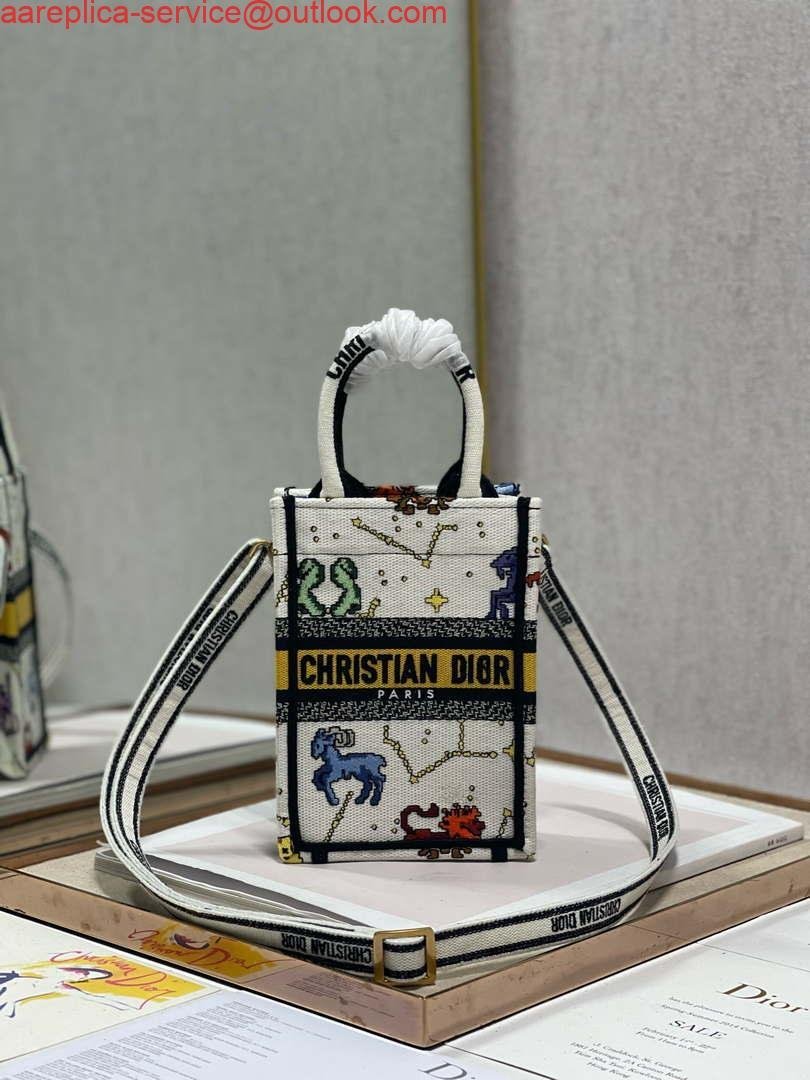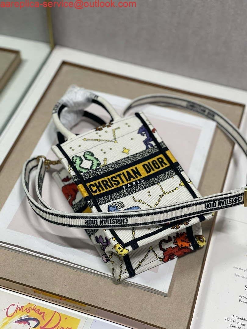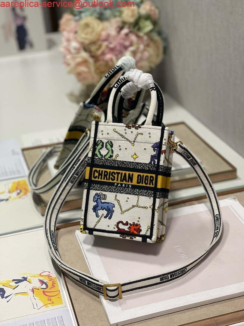 Replica Dior S5555 Mini Dior Book Tote Phone Bag White multicolor Deer embroidery S1105 on sale now. just need $288.00 and includes free worldwide shipping.