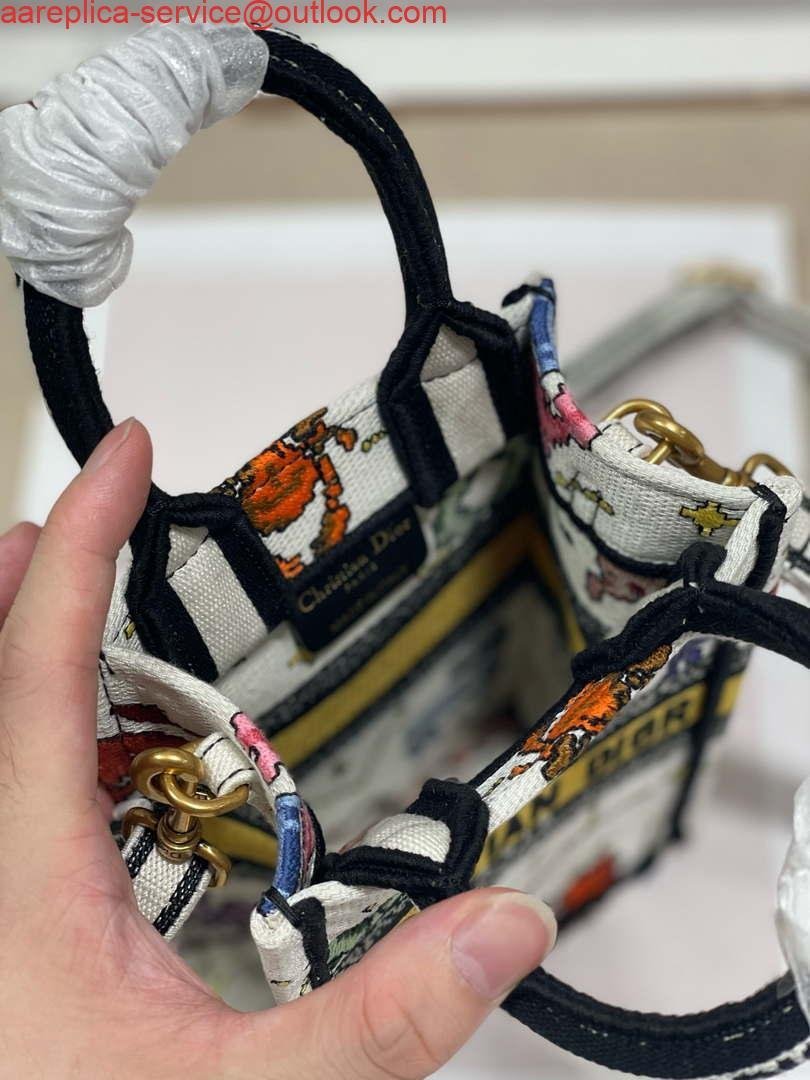 Replica Dior S5555 Mini Dior Book Tote Phone Bag White multicolor Deer embroidery S1105