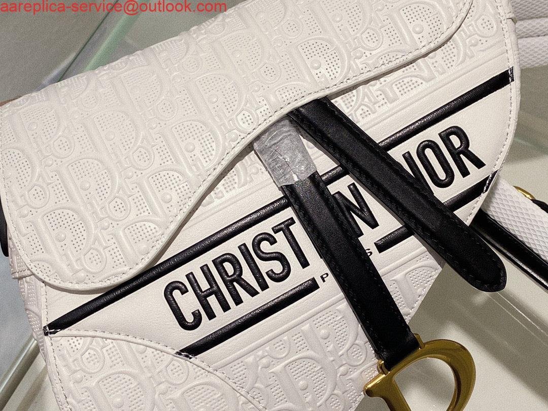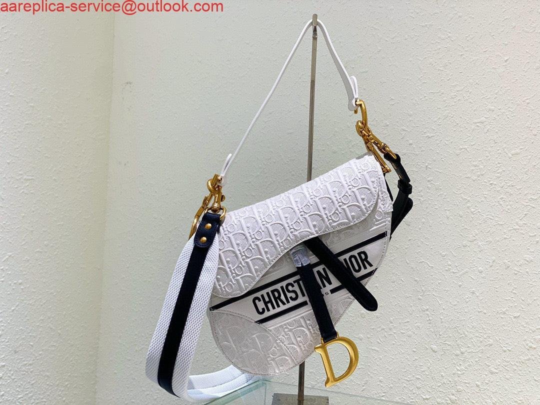 Dior Saddle Bag White and Blue Dior Oblique Perforated Calfskin M0446 on sale now.