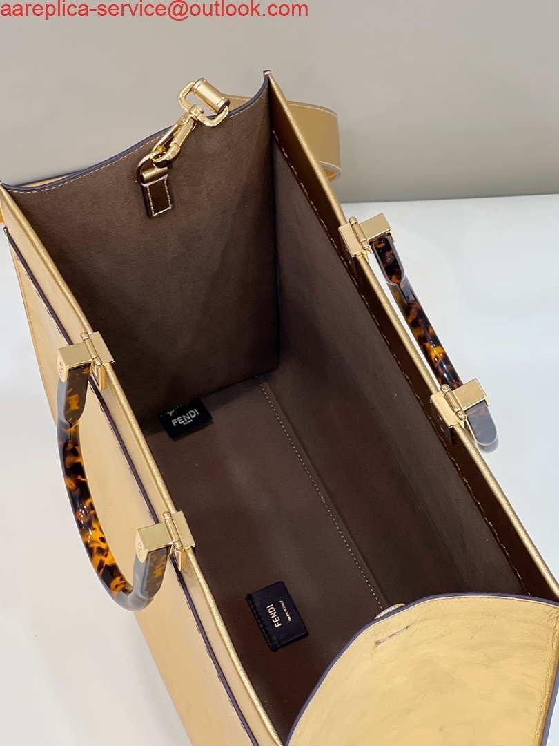 Fendi 8553 Sunshine Medium Tote Shoulder Bag 8BH386 Gold Laminated leather shopper on sale now.