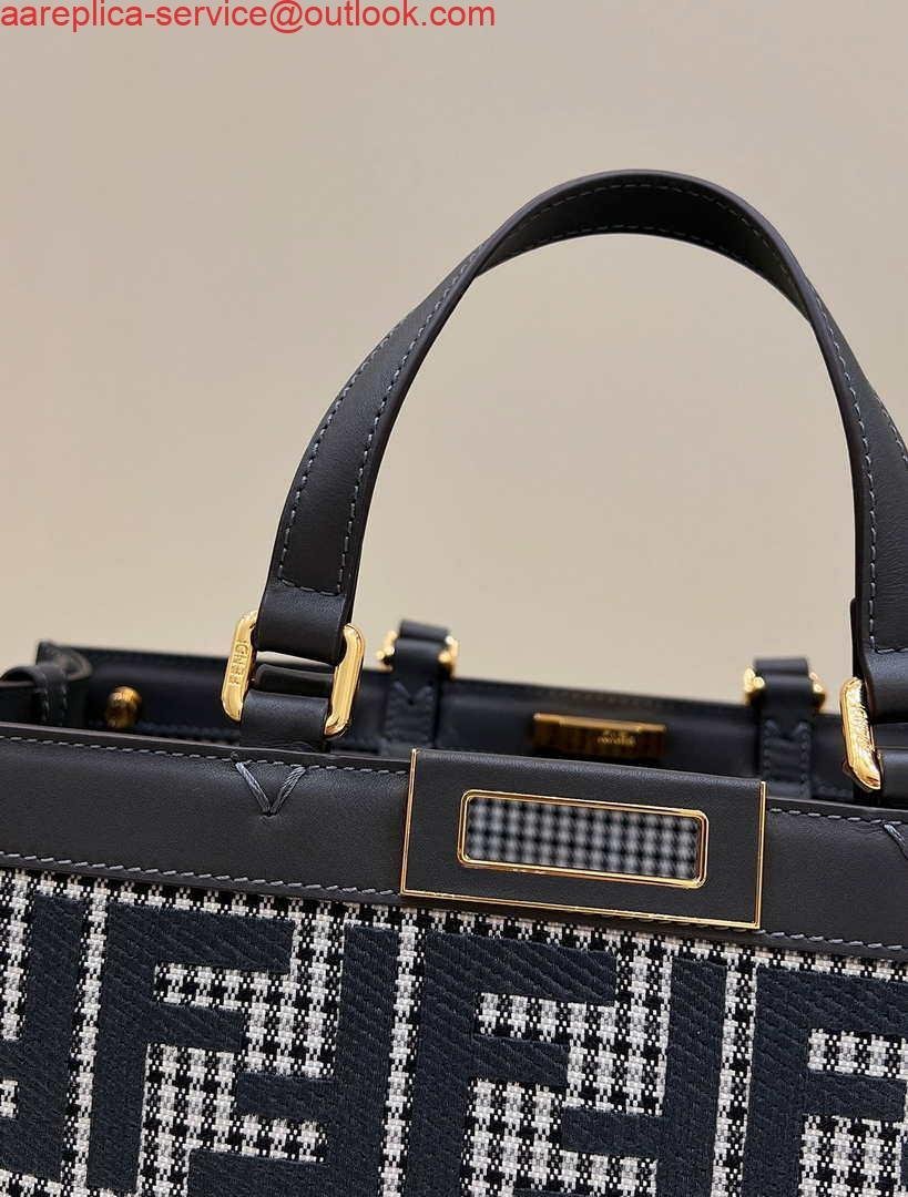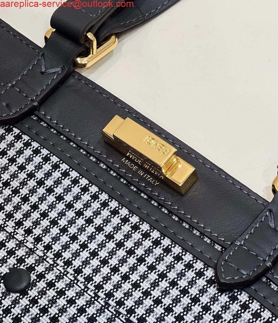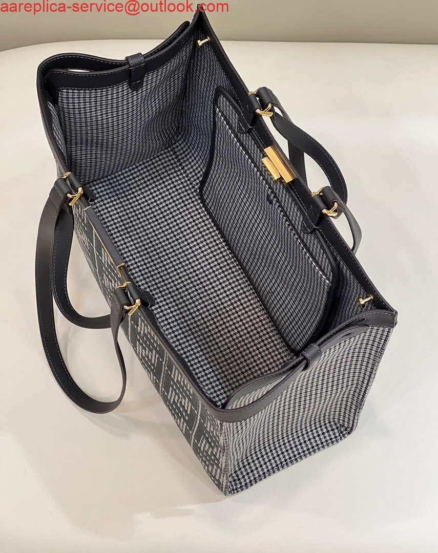 Replica Fendi 8BH374 X-Tote Gray houndstooth wool shopper with FF embroidery