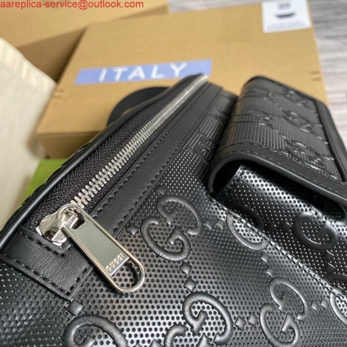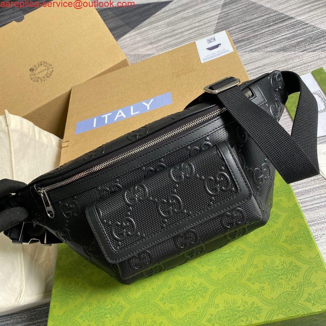 Replica Gucci ‎645093 GG embossed belt bag Black GG embossed leather
