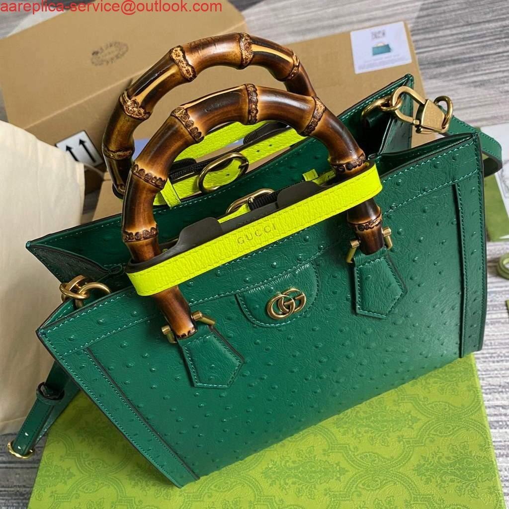 Replica Gucci Diana Small Tote Bag Ostrich Top Handle Bag 660195 Green