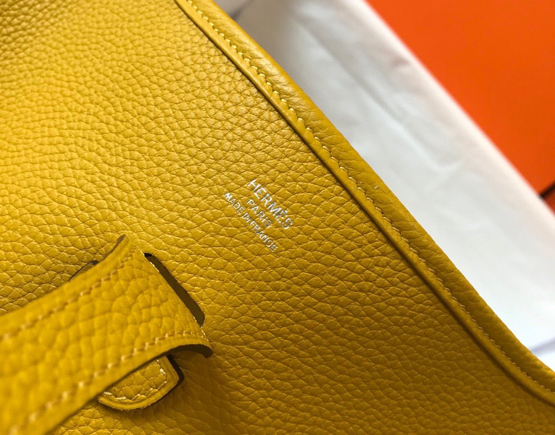 Hermes H083435 Evelyne III 29 Shoulder Bag Silver Hardware Yellow on sale now.