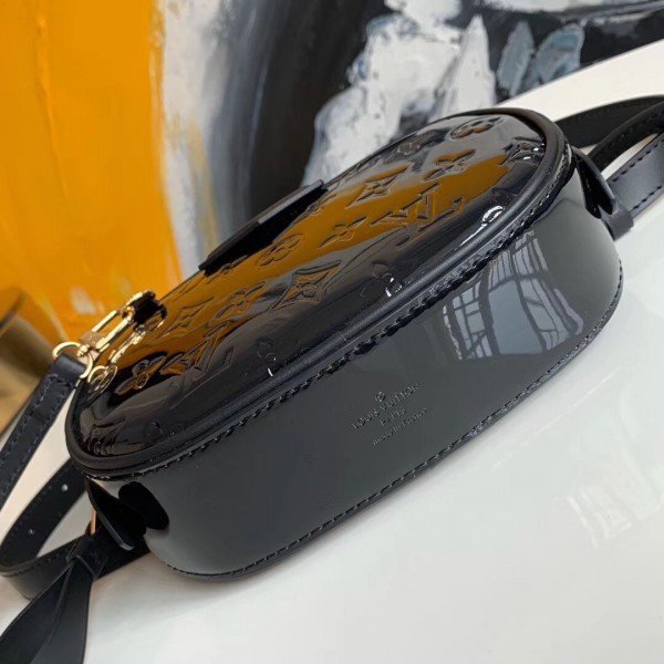 Louis Vuitton LV Belt Bag Monogram Vernis Leather M90464 BLV601. Louis Vuitton introduces a new Beltbag in Monogram Vernis patent leather combined with smooth cowhide leather and signed with a discreet gold-tone Louis Vuitton Paris on the top. The thin adjustable belt and adjustable leather strap make it a versatile bag that can be worn cross-body or on the waist or hips to suit young and trendy women’s needs.