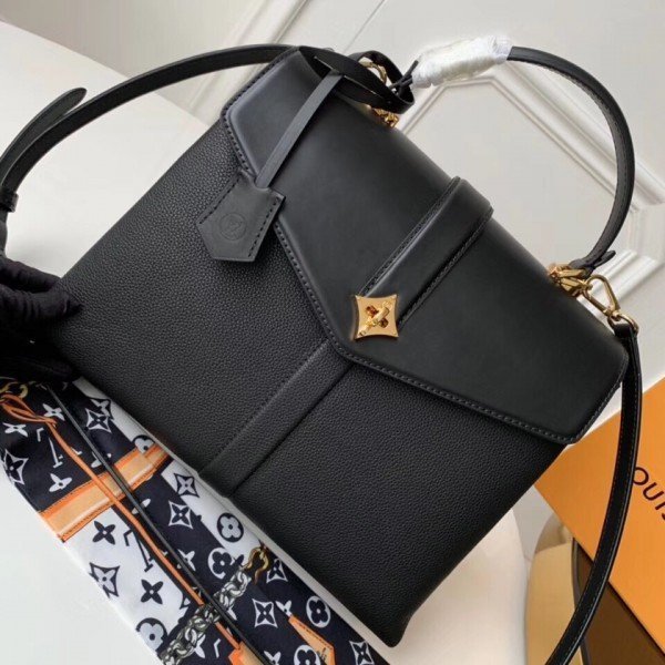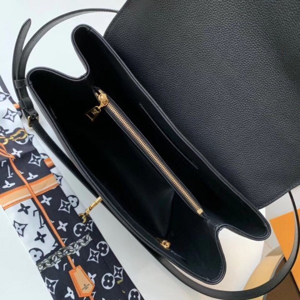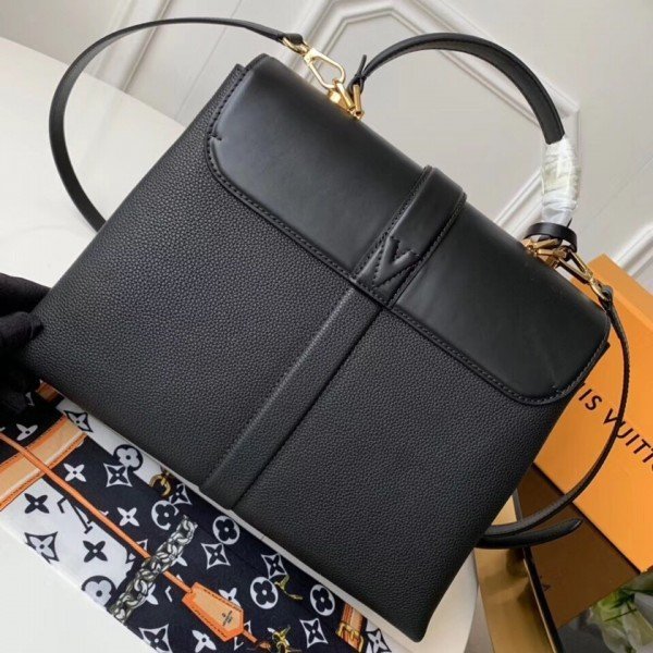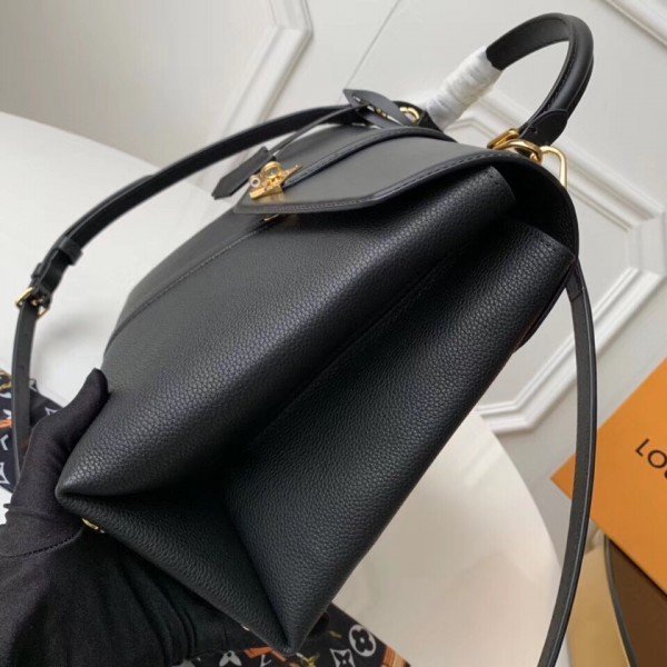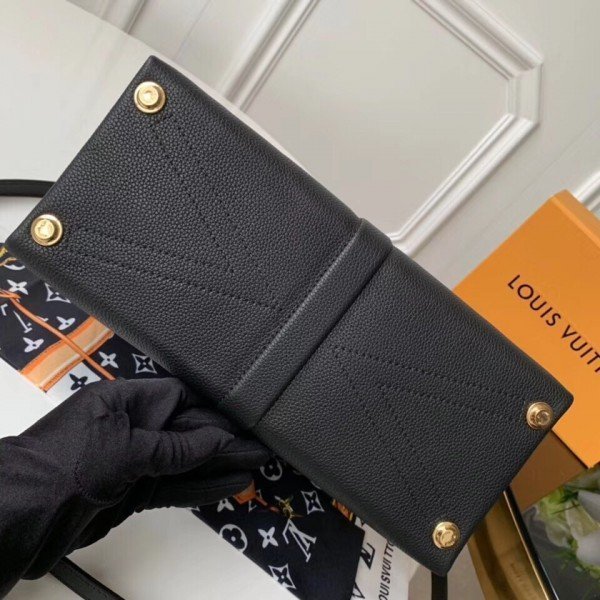 Louis Vuitton LV Black Rose des Vents MM Bag M53816 BLV747. Louis Vuitton brings grained calf leather together with smooth calf leather in the fancy Rose des Vents MM handbag. Signed with a gold-tone LV padlock and a calf leather key bell. there??s a slender top handle for elbow carry and an adjustable strap for cross-body wear. Inside compartments and pockets make it a practical and sophisticated everyday bag.