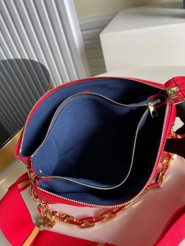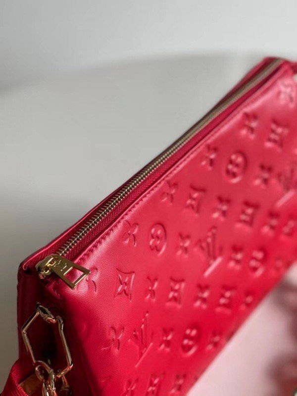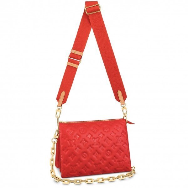 Louis Vuitton  LV Coussin PM Bag Monogram Lambskin M57792 BLV722. One of the stars of the Spring-Summer 2021 show. the Coussin PM handbag is made from Monogram-embossed puffy lambskin. It can be worn cross-body with the strap. as a chain baguette. or comfortably carried under the arm. The pillow-like Coussin bag brings style to the most simple look. giving it an effortless fashion-forward allure.