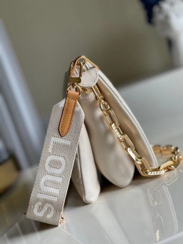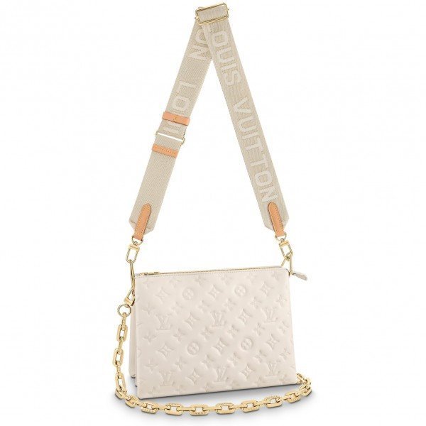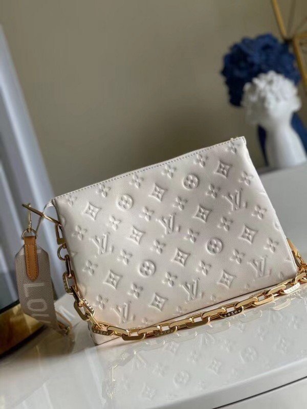 Louis Vuitton LV Coussin PM Bag Monogram Lambskin M57793 BLV723. One of the stars of the Spring-Summer 2021 show. the Coussin PM handbag is made from Monogram-embossed puffy lambskin. It can be worn cross-body with the strap. as a chain baguette. or comfortably carried under the arm. The pillow-like Coussin bag brings style to the most simple look. giving it an effortless fashion-forward allure.