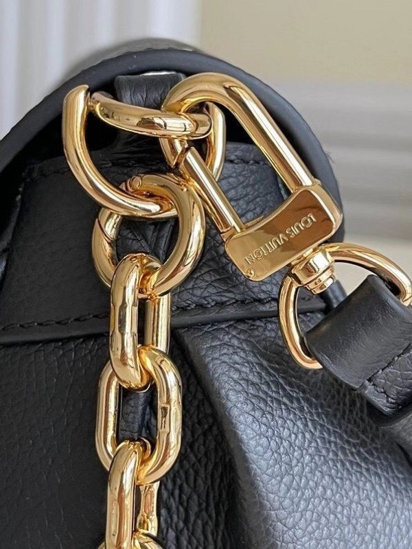 Louis Vuitton LV Favorite Bag Monogram Empreinte M45859 BLV531. The Favorite is a fashionable baguette shoudler bag made from supple grained leather with an oversized embossed Monogram pattern. Feminine pleats bring a couture touch while the gold-color magnetic lock evokes Louis Vuitton??s heritage. A removable and adjustable strap enables short-shoulder carry or cross-body wear while a blod detachable gold-color chain allows more glamorous evening use.