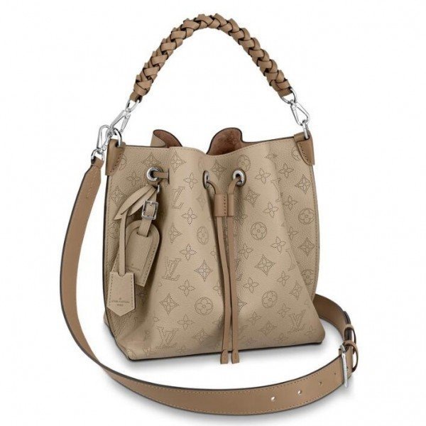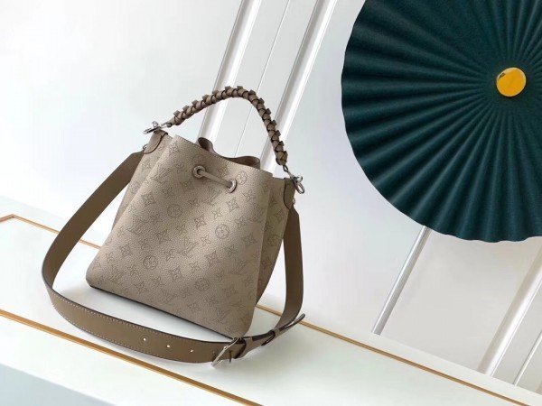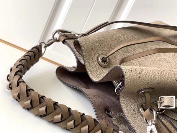 Louis Vuitton LV Muria Bag Mahina Leather M55799 BLV239. The Muria bucket bag is made from Mahina calf. a perforated leather with a discreet Monogram motif. Supple and sophisticated. it is a pleasure to carry. either by the braided top handle or the long leather strap. which adjusts for short- and long-shoulder or hands-free cross-body wear. Crafted signature details include a name tag and keybell in smooth calfskin.