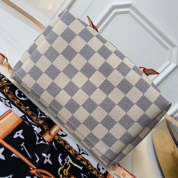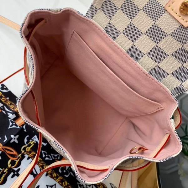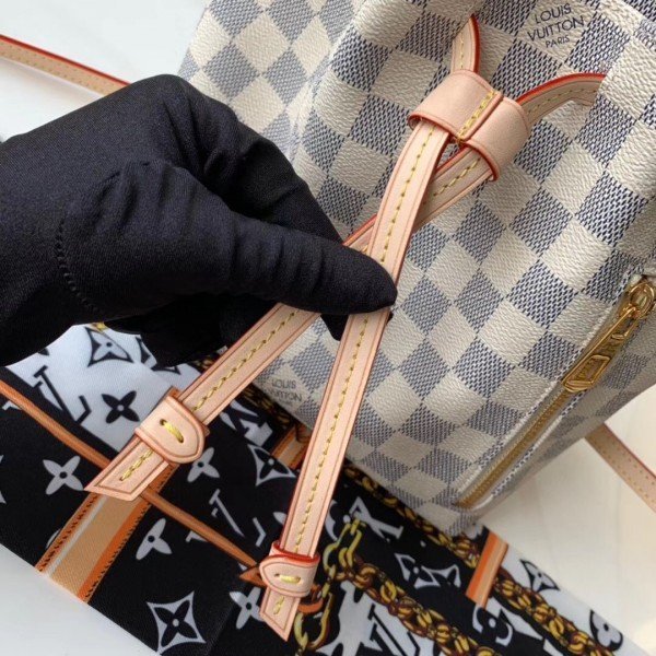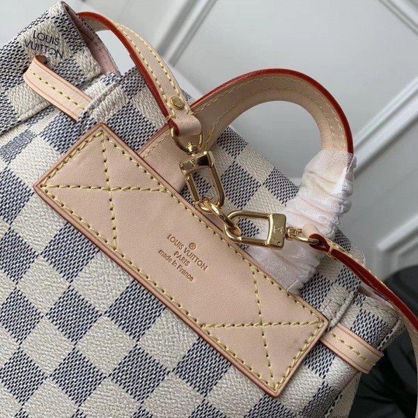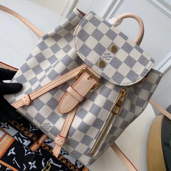 Louis Vuitton LV Sperone BB Backpack Damier Azur N44026 BLV010. Named for a Corsican beach. the Sperone BB backpack looks cool and summery in Damier Azur canvas. Light and easy to carry with its top handle and adjustable straps. this charming bag opens wide to reveal a pretty pink interior. It is trimmed with the House??s signature natural leather. which acquires an attractive patina over time.