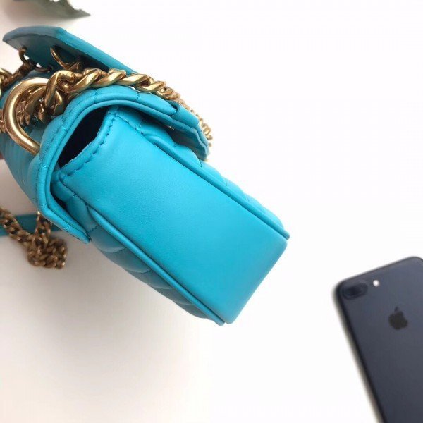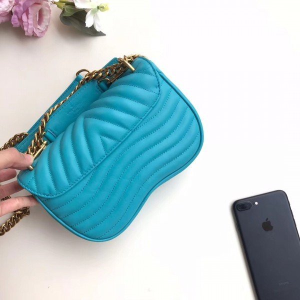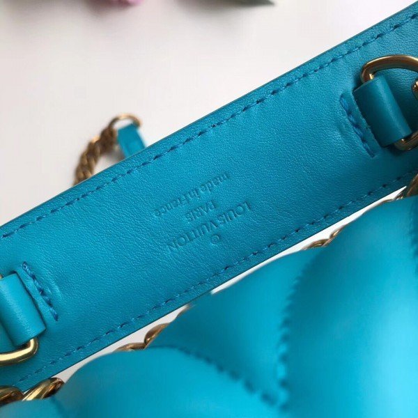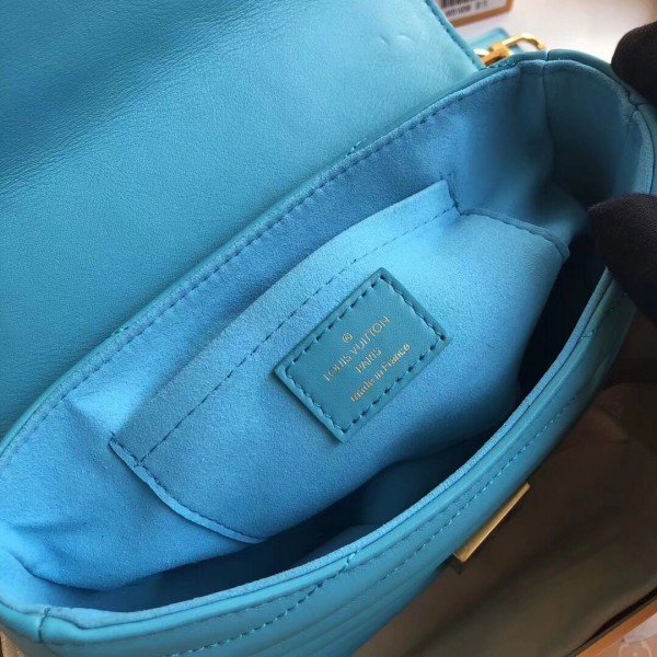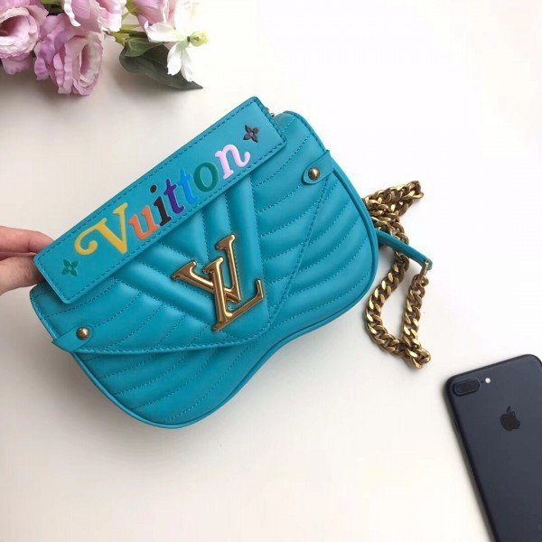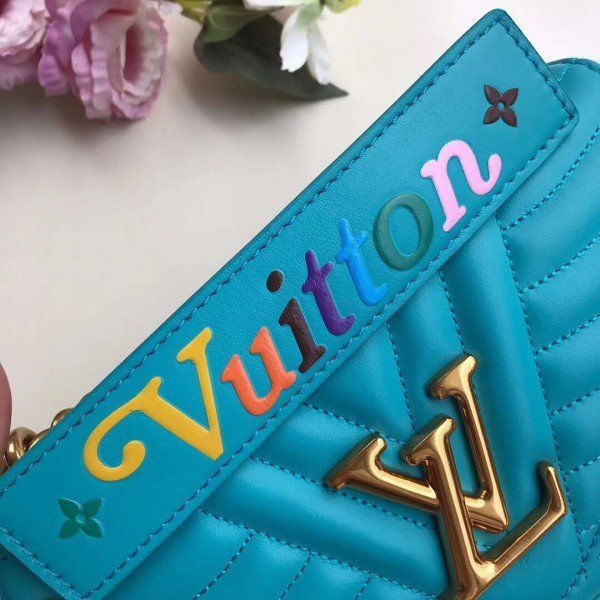 Louis Vuitton LV Turquoise New Wave Chain Bag PM M51936 BLV643. Presenting the Louis Vuitton New Wave Chain Bag PM. a statement piece destined to become a fashionable wardrobe staple. Made from smooth quilted calfskin. it features a removable handle with a colorful ??Louis Vuitton?? signature. An aged-metal finish adds richness to the bag??s hardware and sliding chain. which adapts to long- and short-shoulder or cross-body wear.