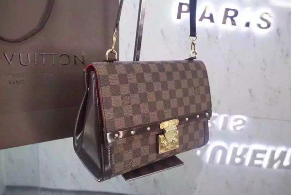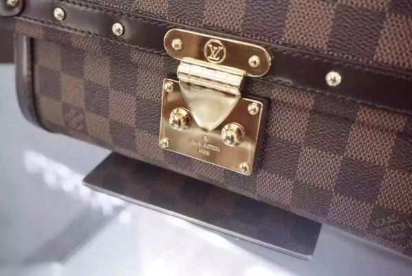 Louis Vuitton LV Venice Bag Damier Ebene N41398 BLV108. When a bag that stunned on the runway gets the iconic House treatment. the result is a piece to be treasured for a lifetime. The Venice adds the extra dimension of timeless House codes: witness the S-lock closure. decorative ??trunk nails?? and Damier canvas. A sophisticated complement to feminine silhouettes thanks to rounded lines and luxurious accents. the Venice also partners with bolder looks. with its brass studs and oversize lock.