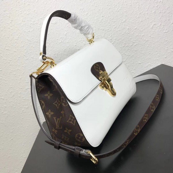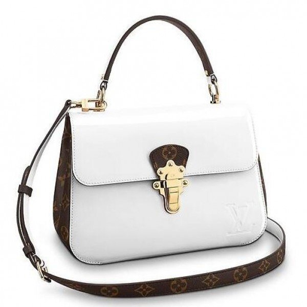 Louis Vuitton LV White Cherrywood Bag Patent Leather M53352 BLV661. The ladylike Cherrywood in glossy patent leather features a top handle and removable strap trimmed with Monogram canvas. A fashionable daily companion. it opens wide for easy access to the roomy interior. An embossed LV logo and heritage tuck lock are discreet yet distinctive signatures.