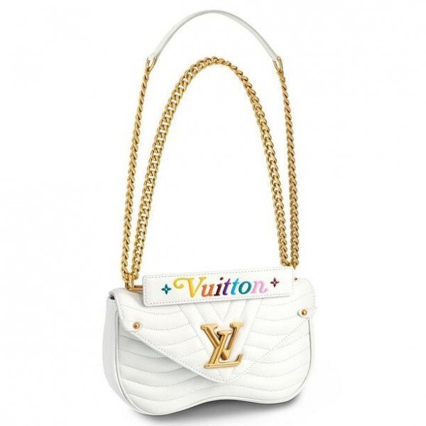 Louis Vuitton LV White New Wave Chain Bag MM M51945 BLV640. Introducing the Louis Vuitton New Wave Chain Bag MM. crafted from smooth quilted calfskin. On-trend details ?C a detachable handle signed ??Louis Vuitton.?? edgy hardware with an aged-metal finish ?C make this a statement piece that is also perfect for every day. The sliding chain adjusts the drop for long-. short-shoulder or cross-body wear.
