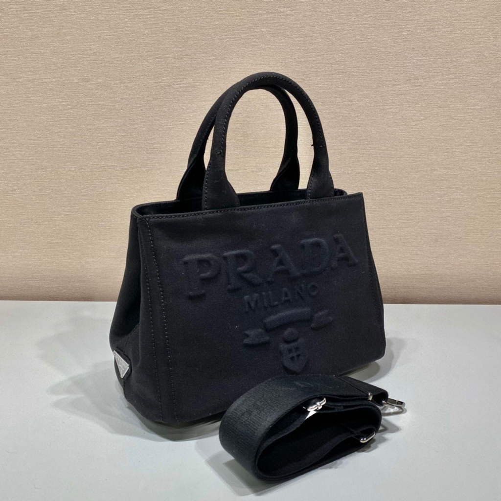 Prada 1BG439 Denim Tote bag black on sale now.