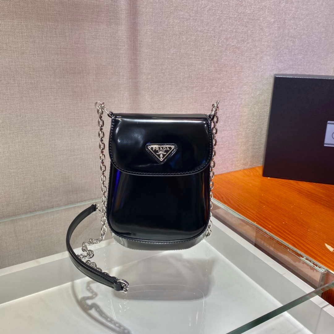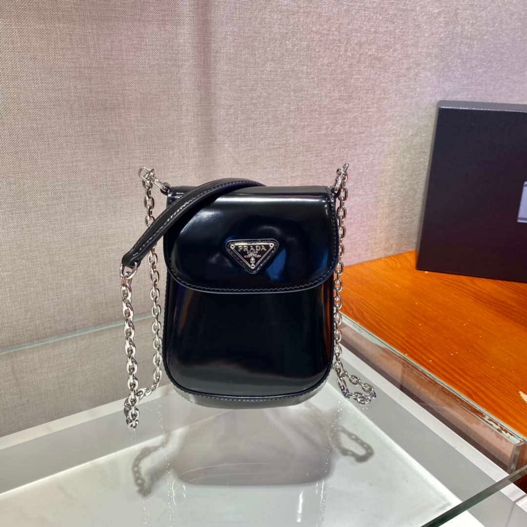 Prada 1BH185 Mini Cleo BRUSHED Leather Black on sale now.