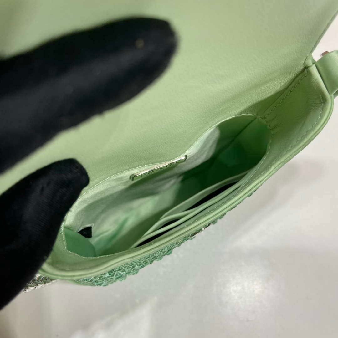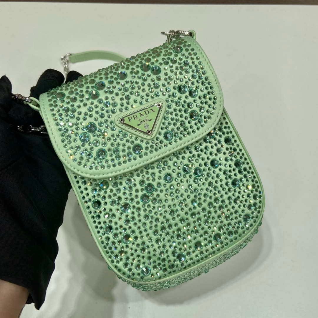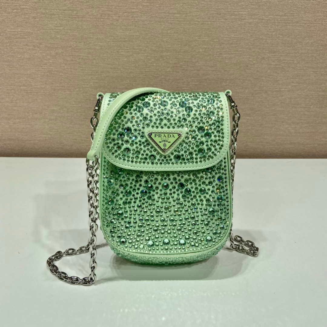 You will get an AAAAA quality knockoff Prada 1BH185 Mini Cleo satin bag with crystals Green with the best price. 1:1 made as the original. If you are not satisfied with the product you received. please be sure to contact us. we promise to solve the problem for you. We are confident that you will adore our products and that we can establish a long-term business relationship with each other.