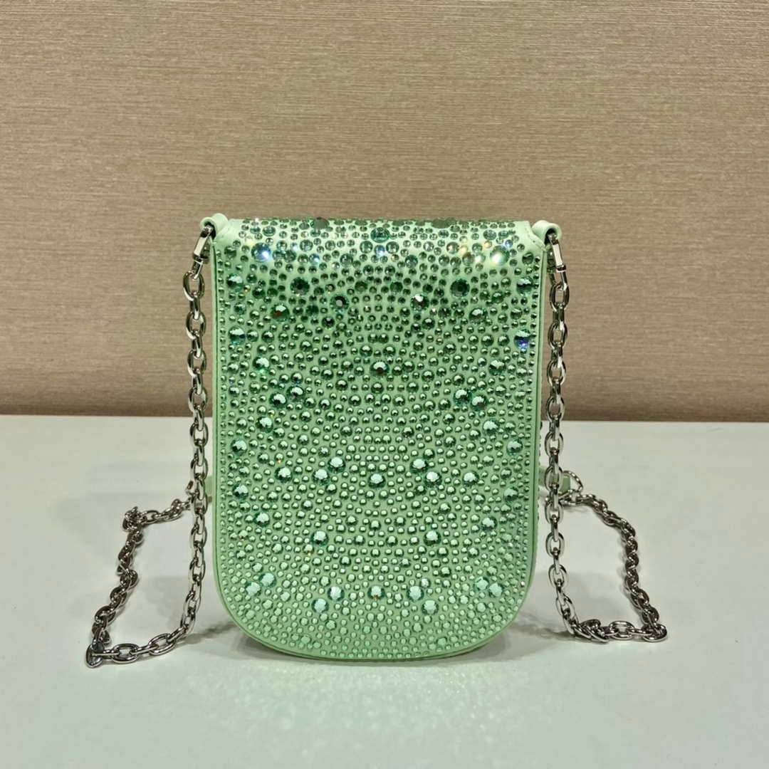 Replica Prada 1BH185 Mini Cleo satin bag with crystals Green