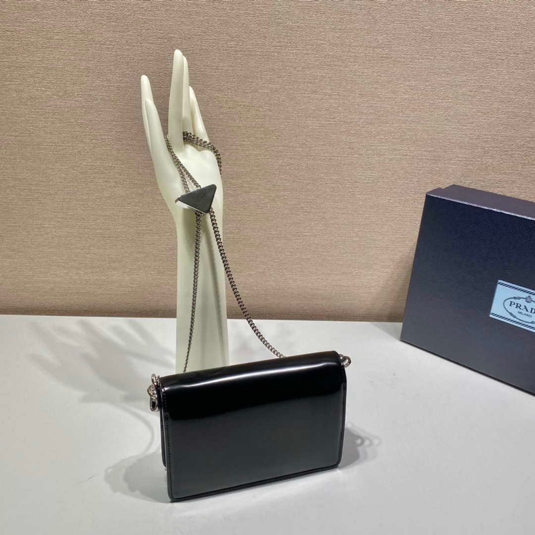Prada 1BH189 Brushed leather shoulder bag Black on sale now.