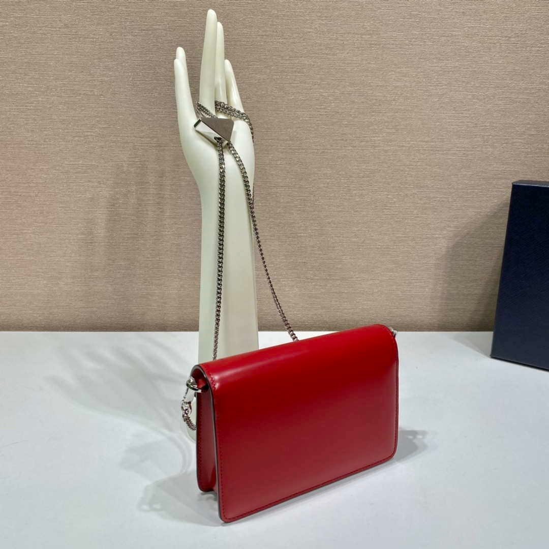 Prada 1BH189 Brushed leather shoulder bag Red on sale now.