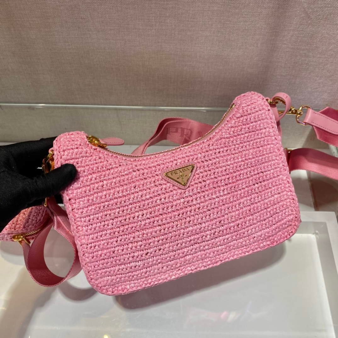 Replica Prada 1BH204 Prada Re-Edition 2005 Raffia Bag in Pink