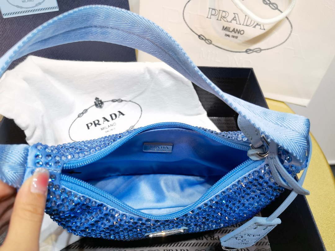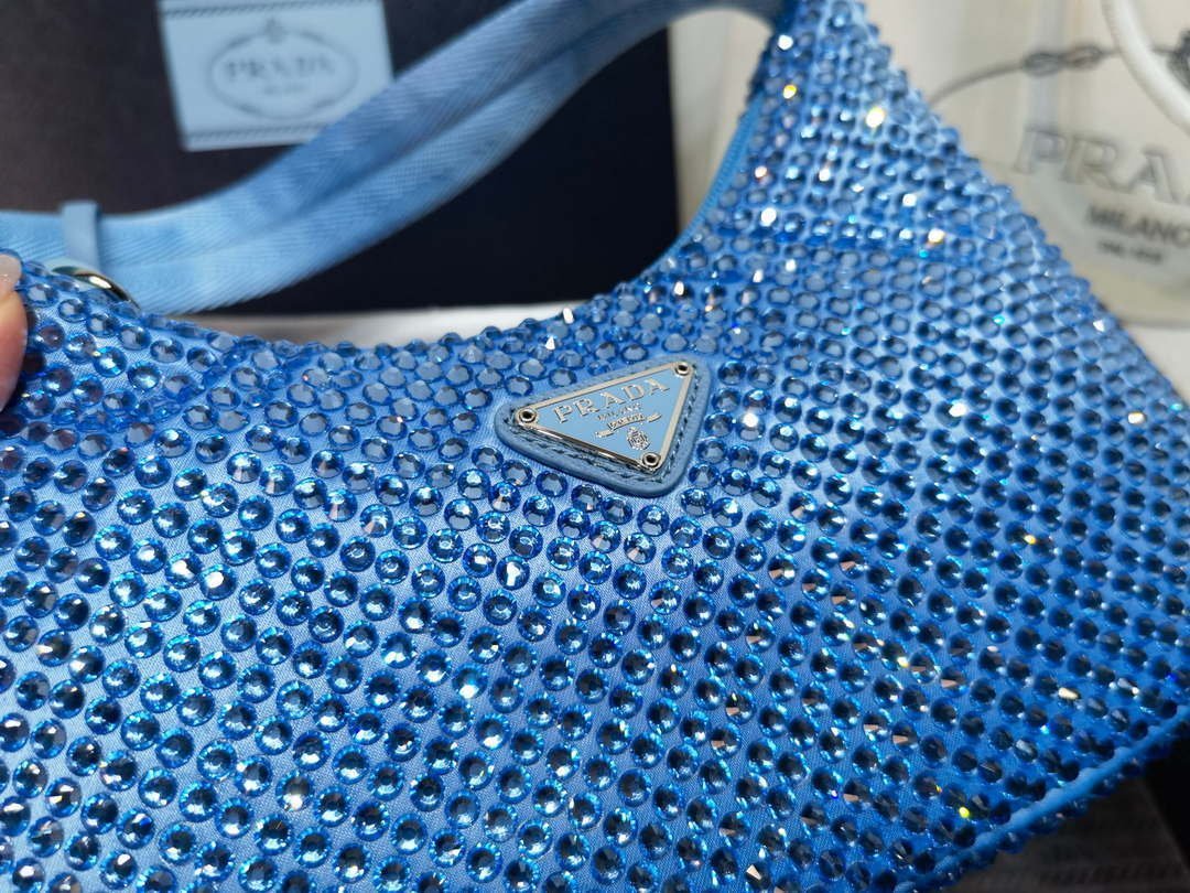 Prada 1NE515 Satin mini-bag with artificial crystals Blue on sale now.